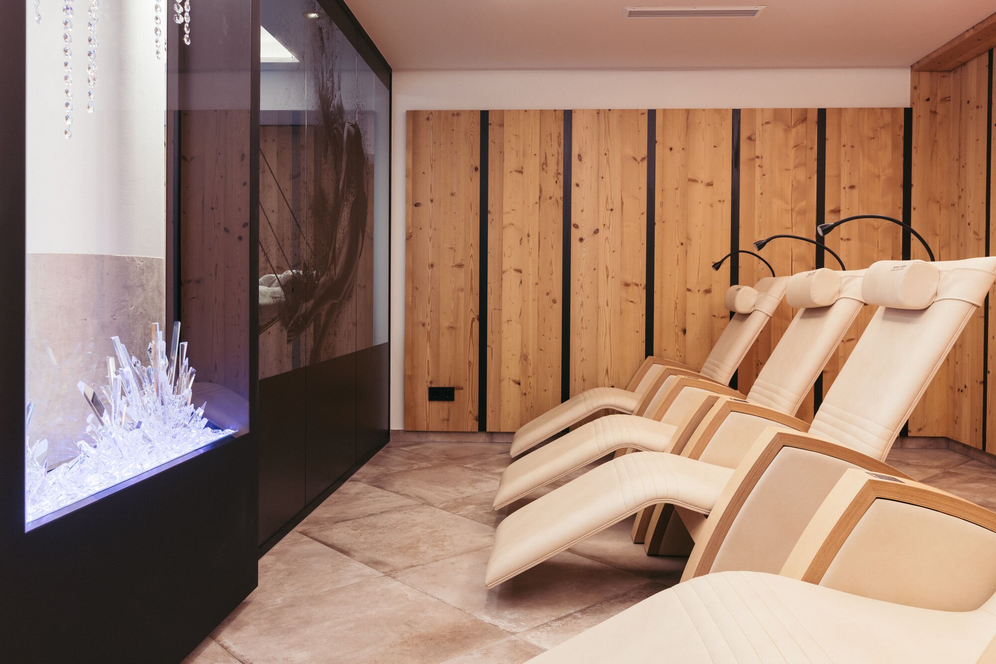 Genießen Sie jeden Augenblick Ihres Aufenthalts. Die 750 m² große Wellnessoase mit Panorama-Hallenbad, Whirlpool, Saunen und Eisbrunnen, Medical Spa und Beautyanwendungen lädt zum Entspannen und Verweilen ein. Lassen Sie den Alltag einfach hinter sich und gönnen Sie sich eine Auszeit mit einem Aufenthalt in der Bergkristallgrotte oder mit einem unserer speziellen Beauty-Packages.