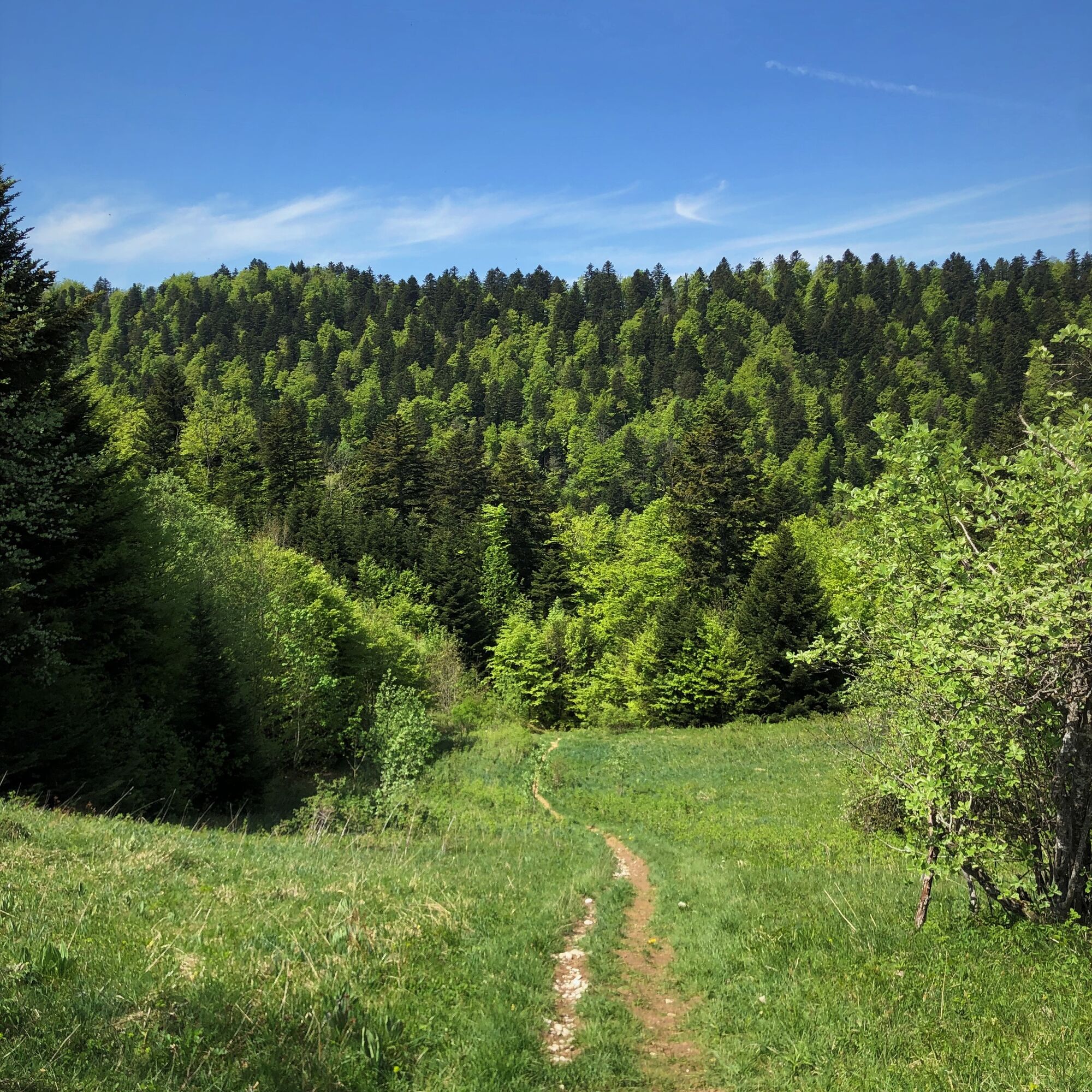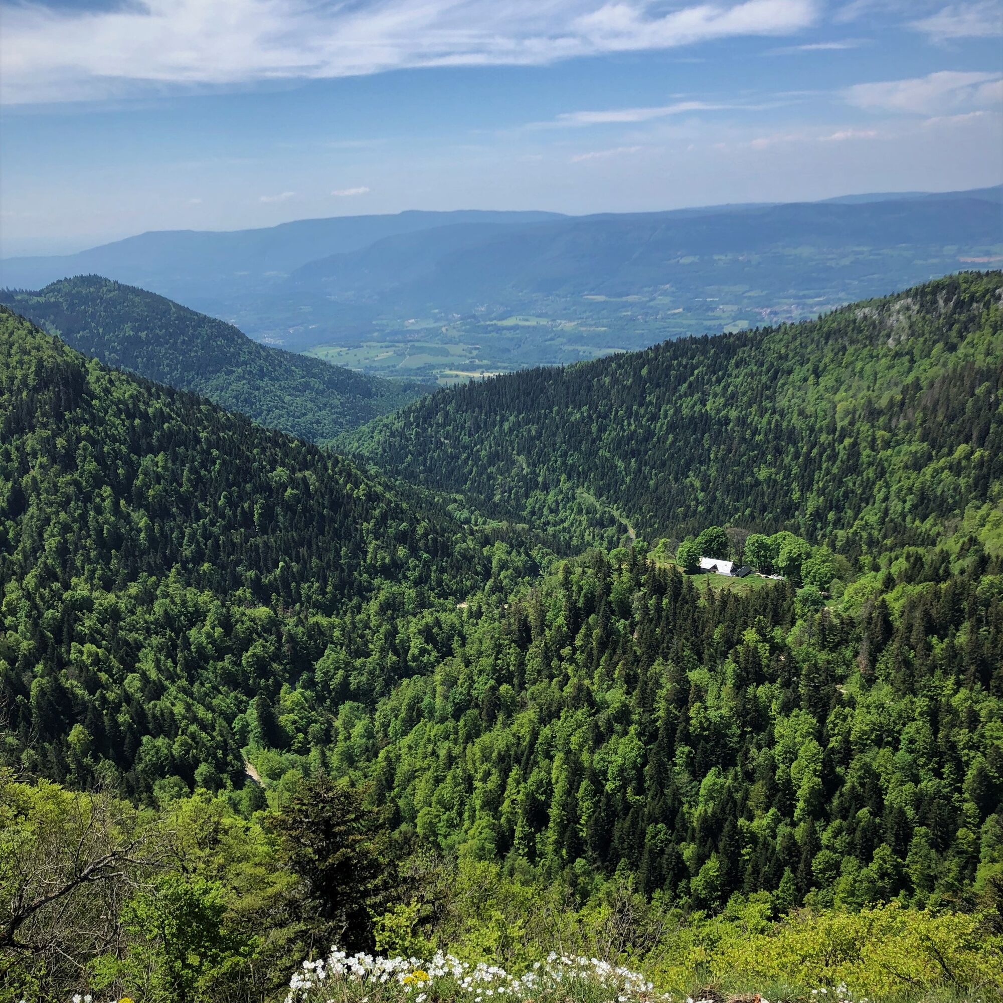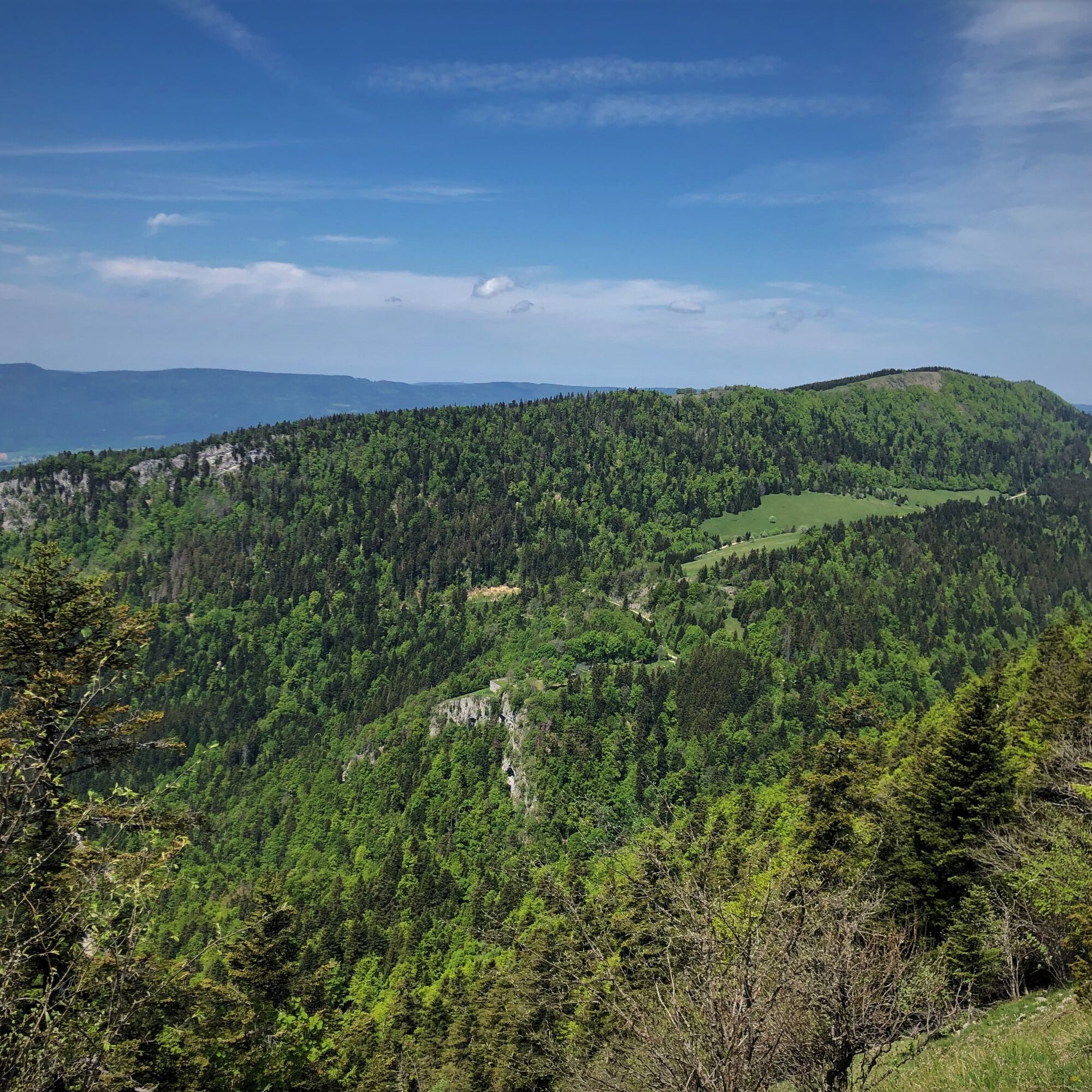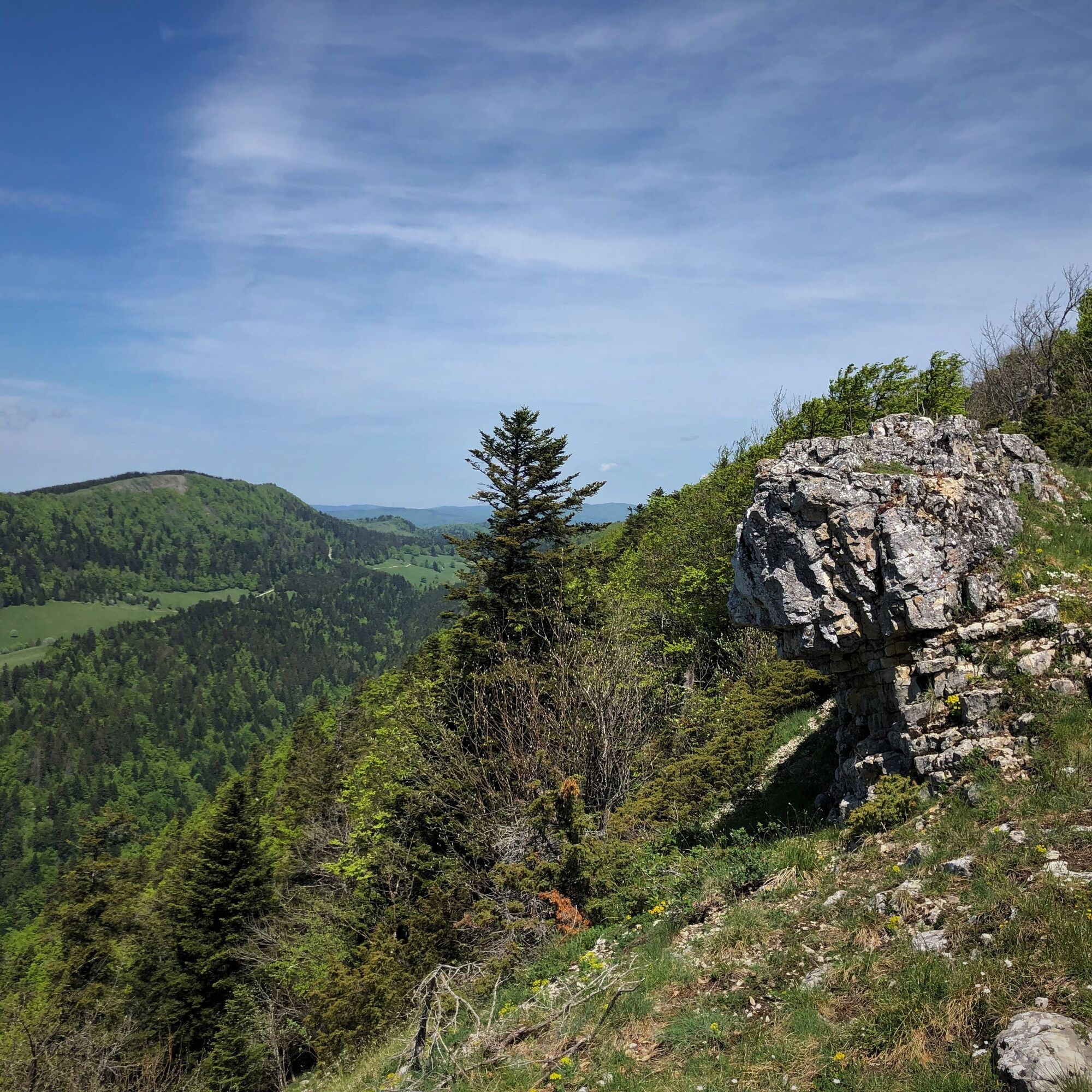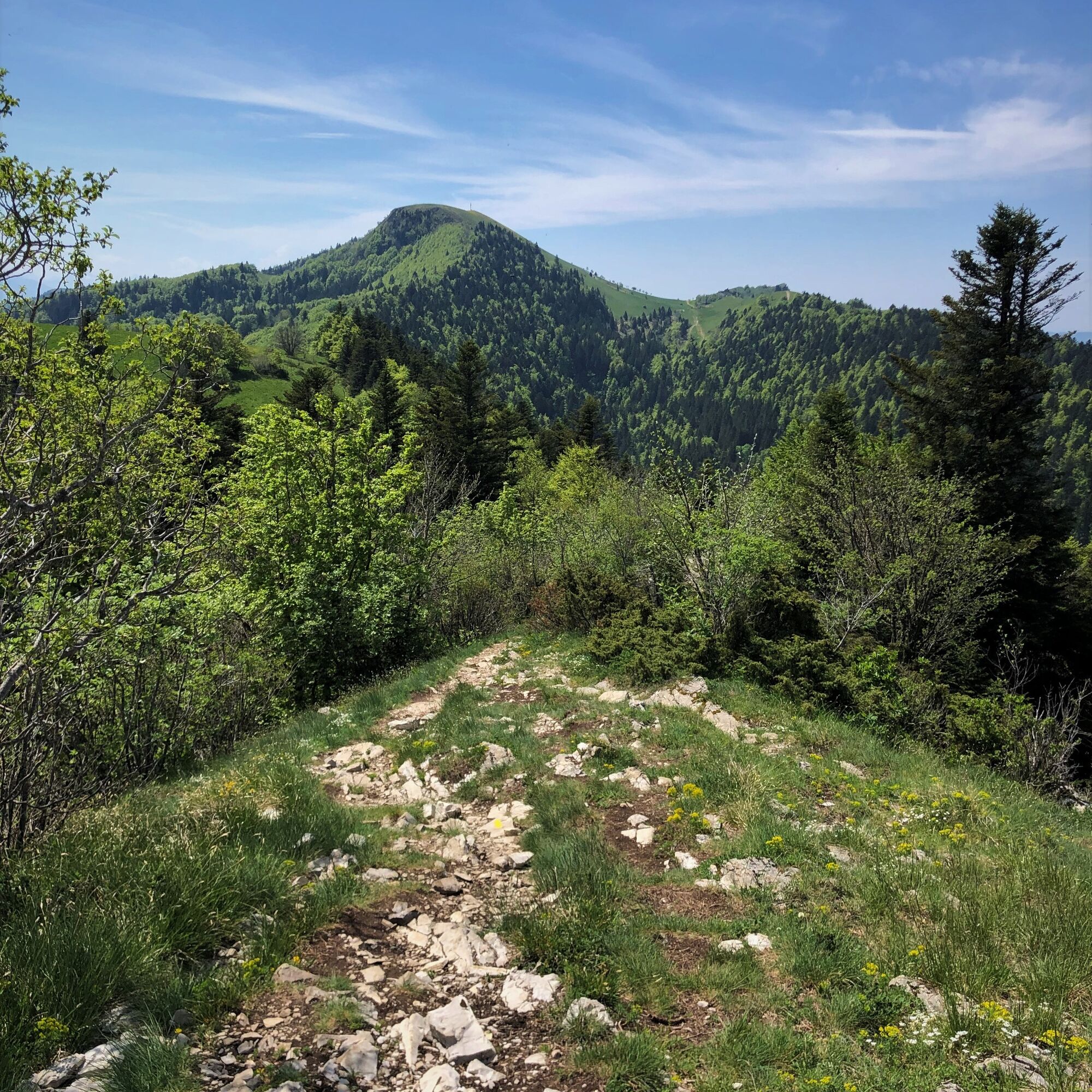 Diese recht hügelige Runde auf den Graten des Grand Colombier-Massivs ermöglicht es, die verschiedenen Panoramen zu genießen, ohne eine große Höhendifferenz überwinden zu müssen. Der Weg führt über Singletrails und Forstwege.
