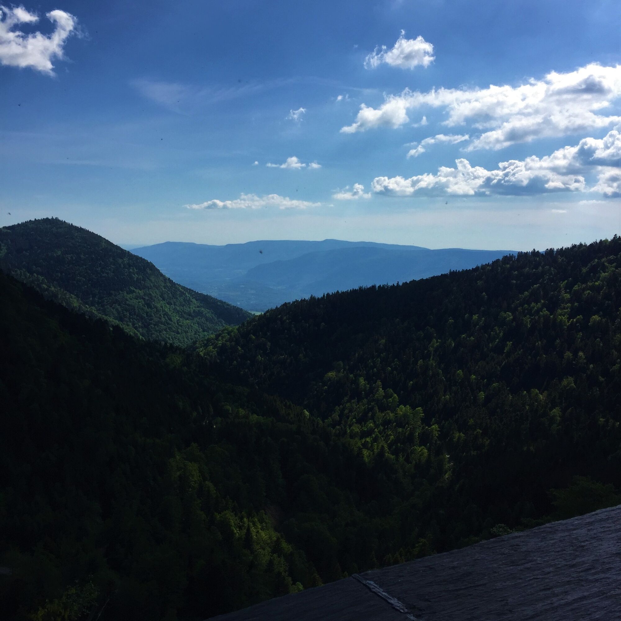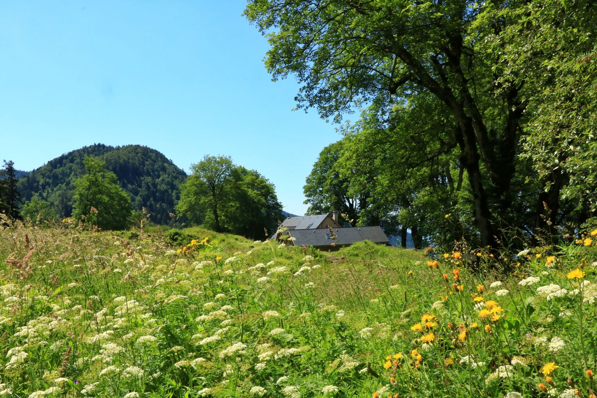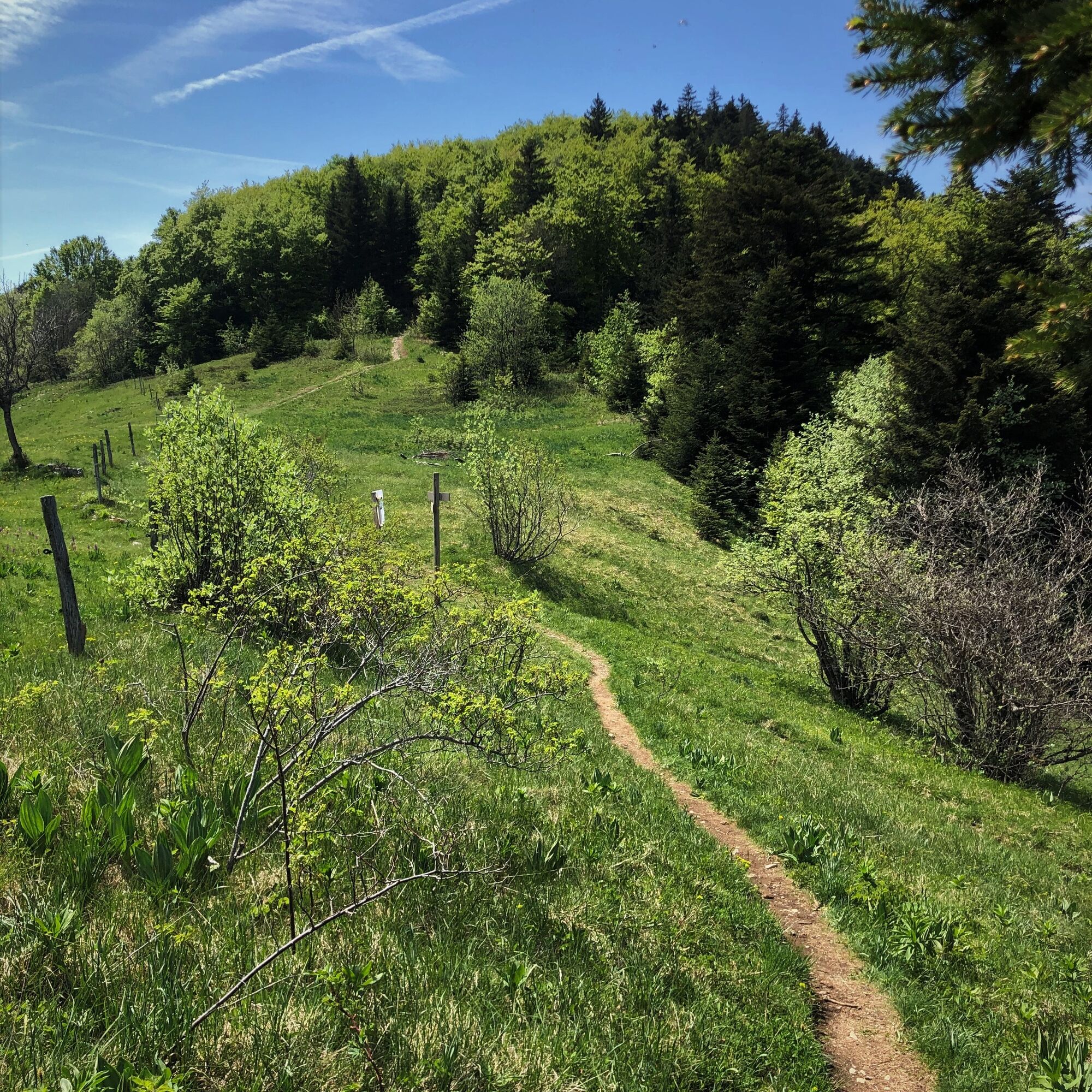 Vom Col de la Biche aus Richtung Auberge de Sur Lyand abfahren und im Kurvenbereich nach dem Wald parken.