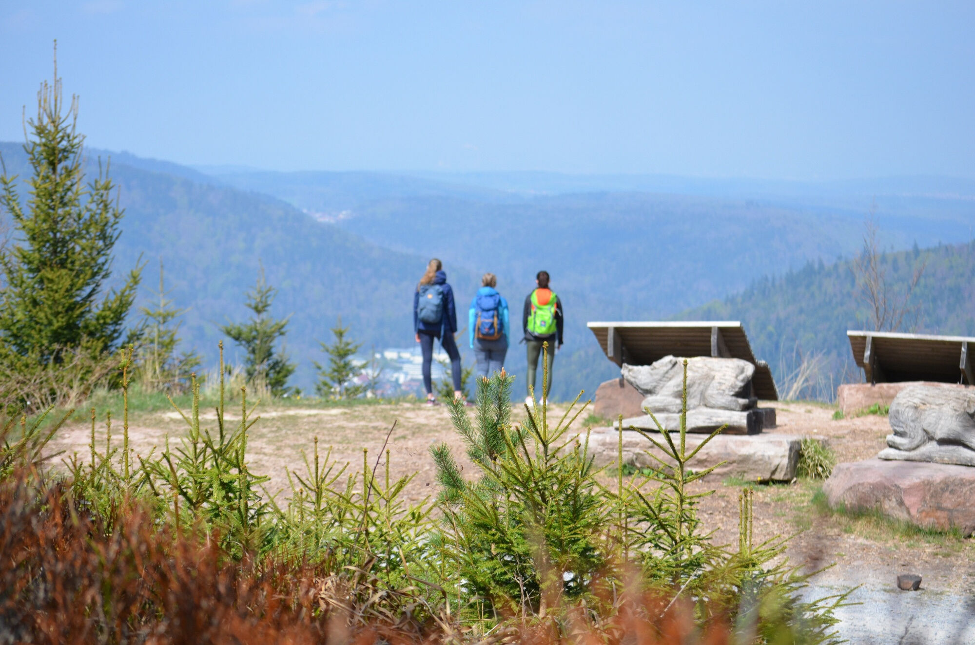 Der Aufstieg zur Hahnenfalzhütte ist anstregend wird aber belohnt mit eindrucksvollen Ausblicken. Über den traditionsreichen Fernwanderweg "Westweg" geht es nun immer entlang der Höhe zu weiteren Highlights wie dem charmanten Kurzhüttensteigle und der Schweizerkopfhütte. Panoramaausblicke über die Rheinebene bis zu den Vogesen laden zum Rasten ein.