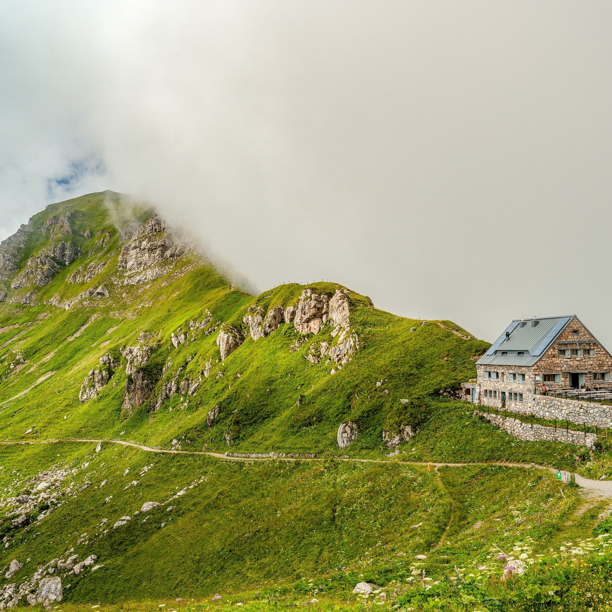 Die Pfälzerhütte an der österreichischen Grenze ist Ausgangspunkt für die Begehung des Liechtensteiner Weges zur Schesaplana.