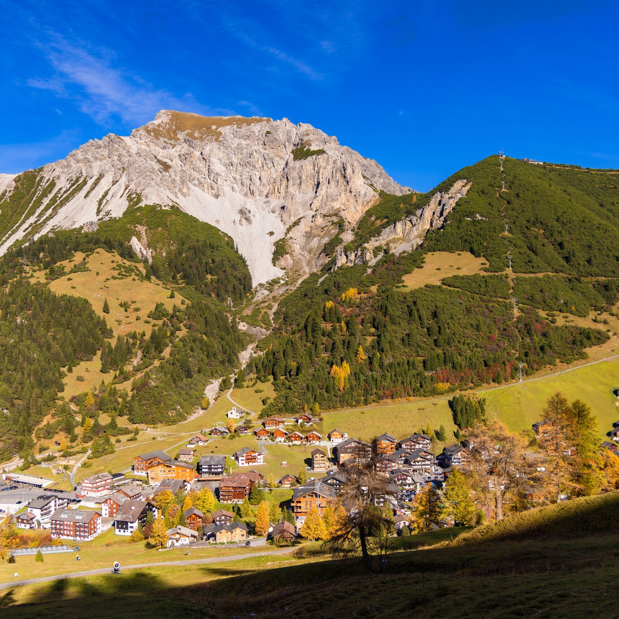 Parkplätze befinden sich am Dorfeingang von Malbun.