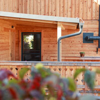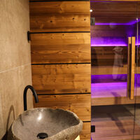 Im Untergeschoß liegt die Sauna mit Dusche und Ruheraum.