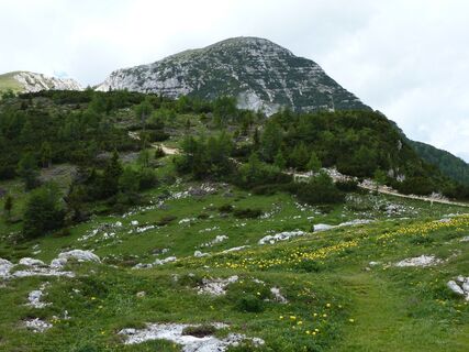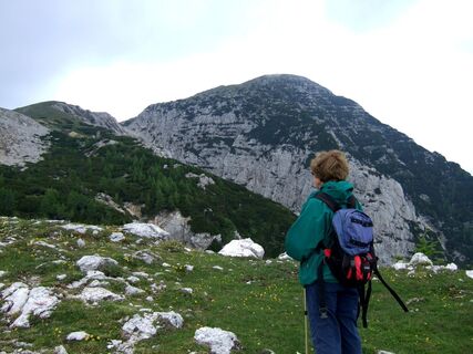 von der Eisenkappler Hütte geht es zuerst etwas steiler bergauf durch lichten Wald bis zur Waldgrenze. Dort befindet man sich besonders im Frühsommer in einem Blumenparadies (Trollblumen, Enziane, Primeln,...