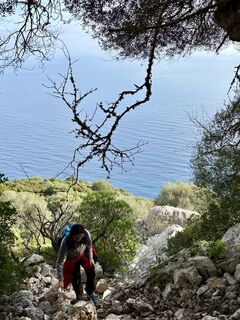 I primi 3 Km sono su una carrozzabile panoramica sul mare che termina su un bel vedere.Da li un sentiero poco tracciato ma visibile sale per circa 1.300 mt con tratti con pendenze importanti anche su franate.Il...